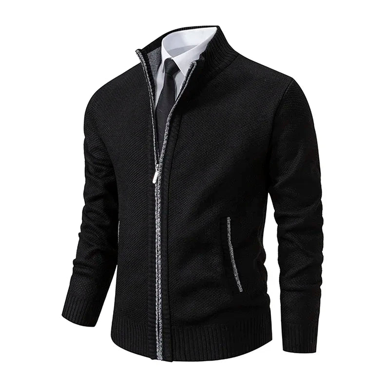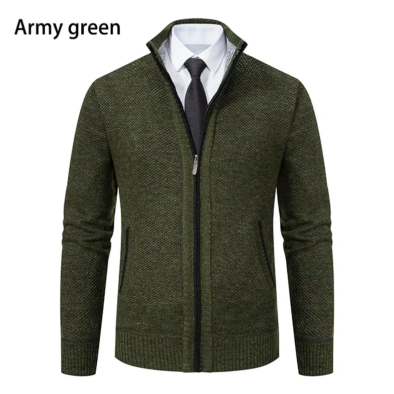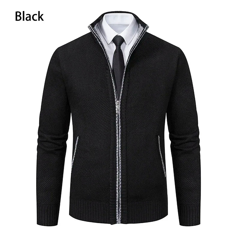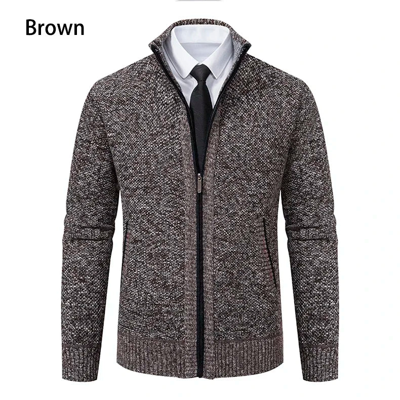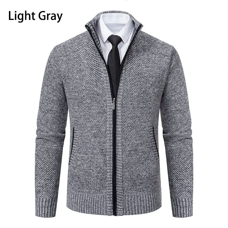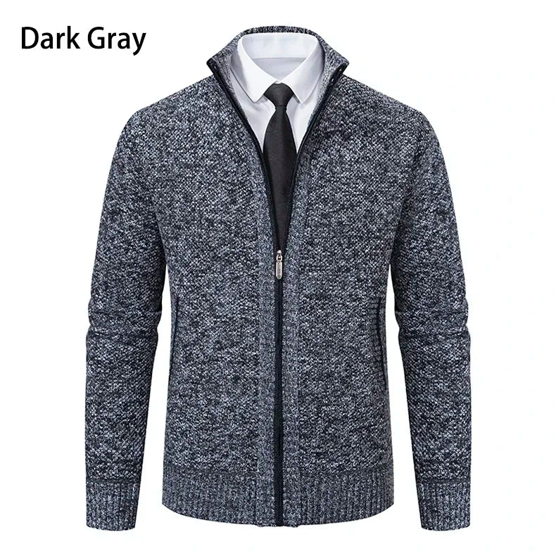 2025 Autumn and Winter New Jersey Men's Casual Sports Coat Solid Color Stand Collar Sweater Grab Fleece Warm Zipper Cardigan