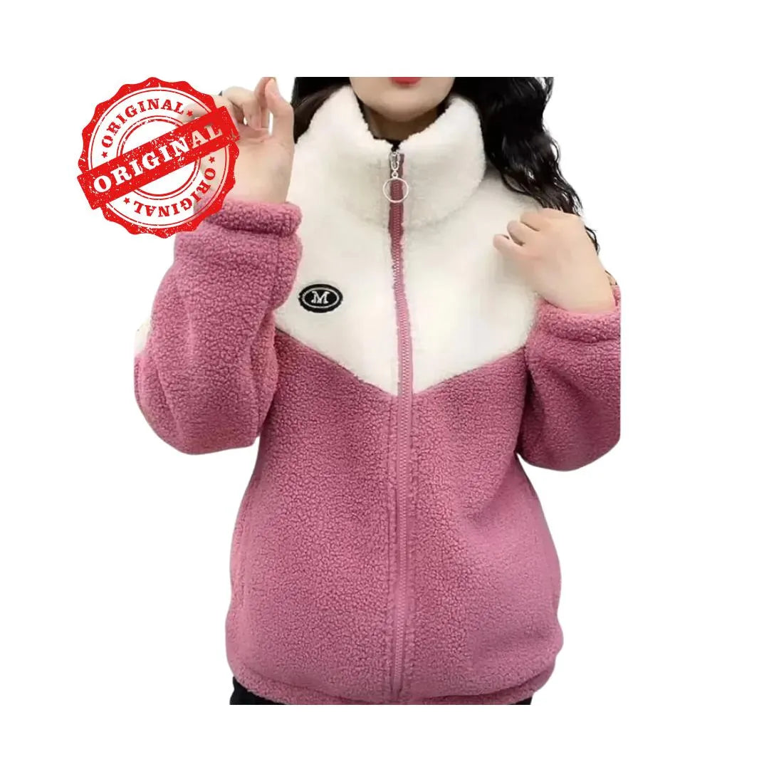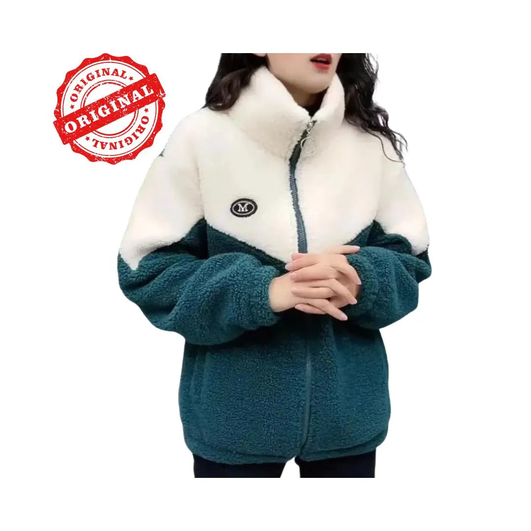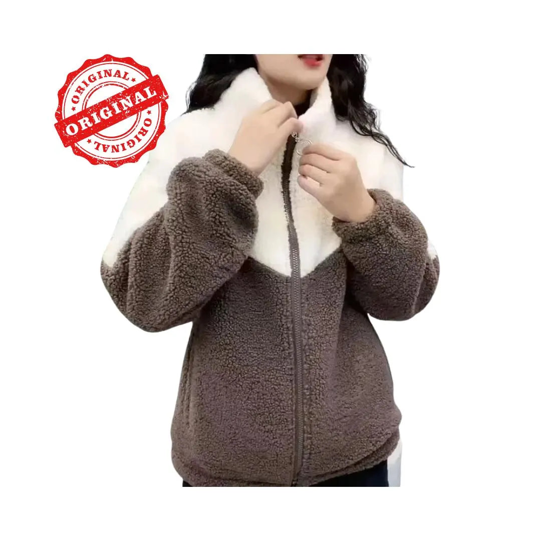 Autumn Winter Fleece Fluffy Jacket Streetwear Harajuku Zipper Coat Woman Lightweight Jacket Plush Warm Jacket Splice Coat