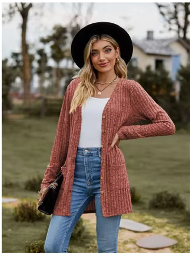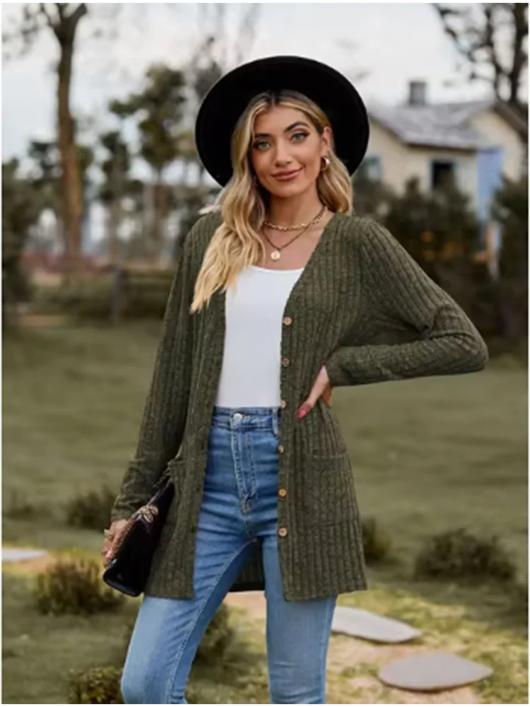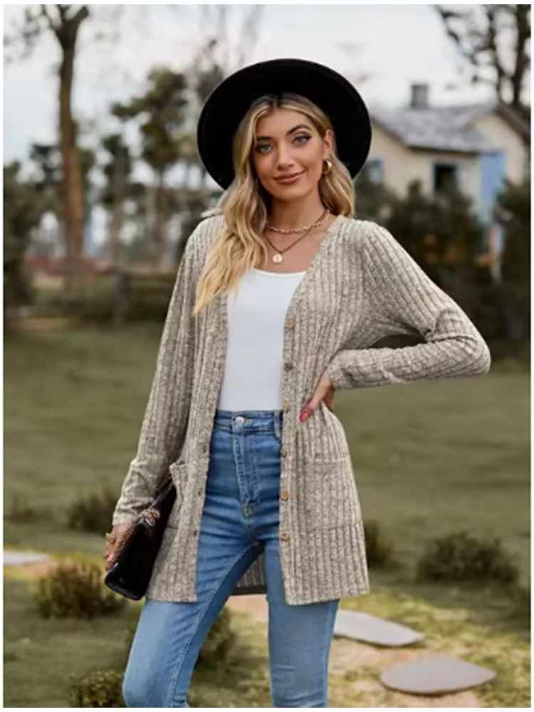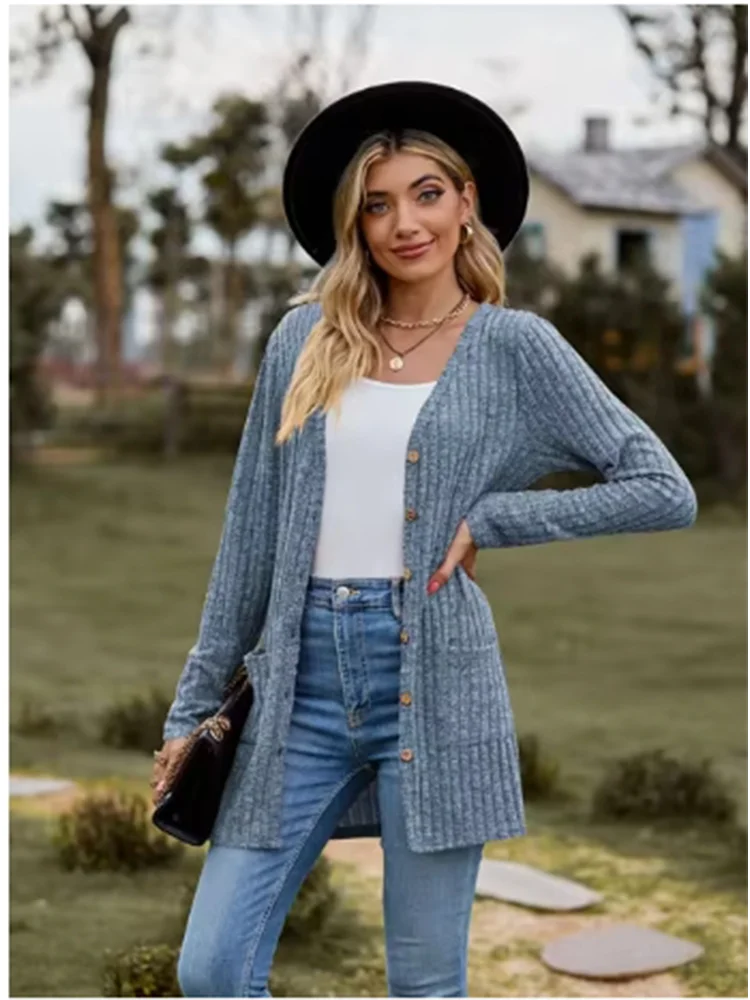 Button Solid Color Long Sleeved New Striped Women's Top Dating Versatile Fashion High Street Autumn Coat