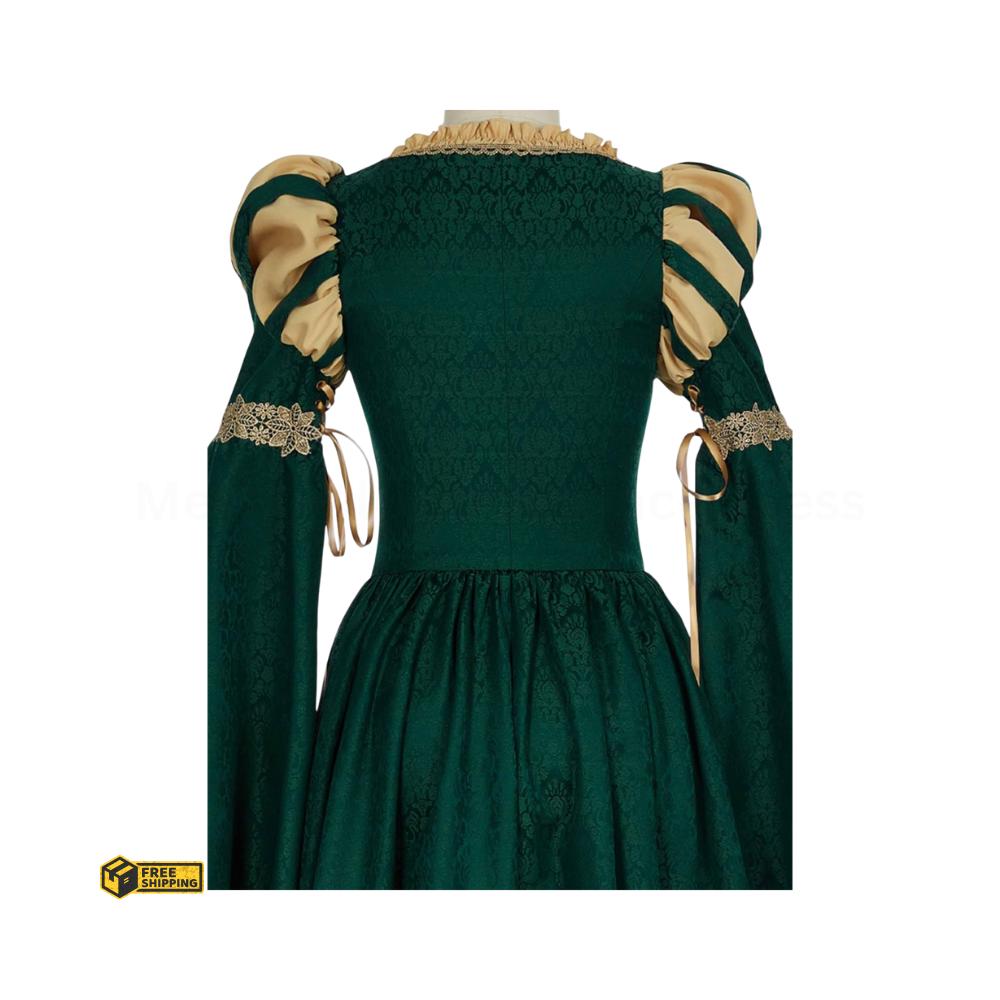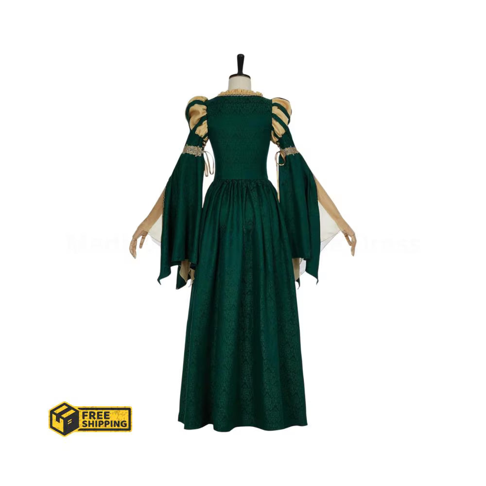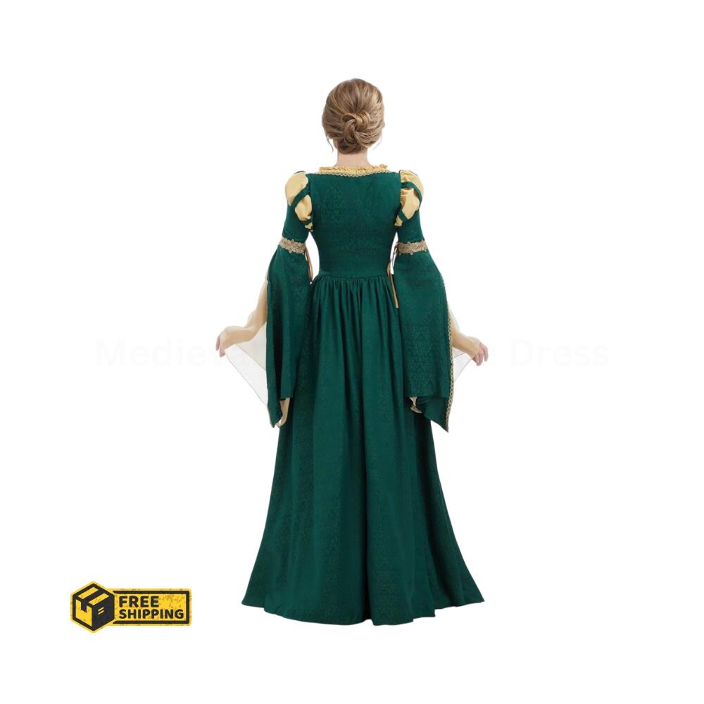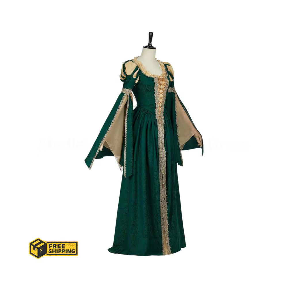 Women Medieval Renaissance Costume Pseudo-two-piece Vintage Renaissance Fair Dress with Wide Sleeves Lace