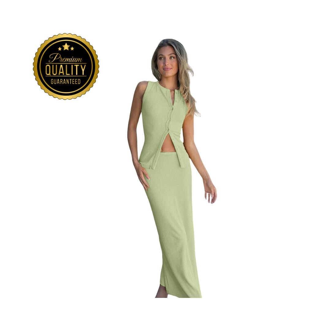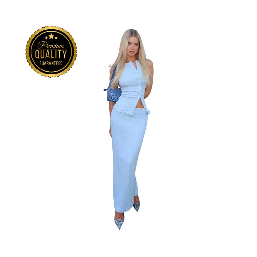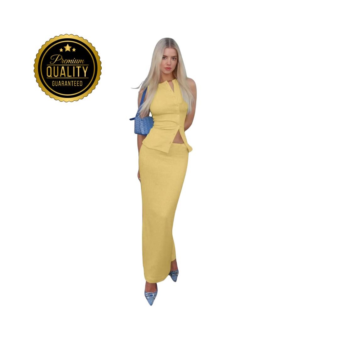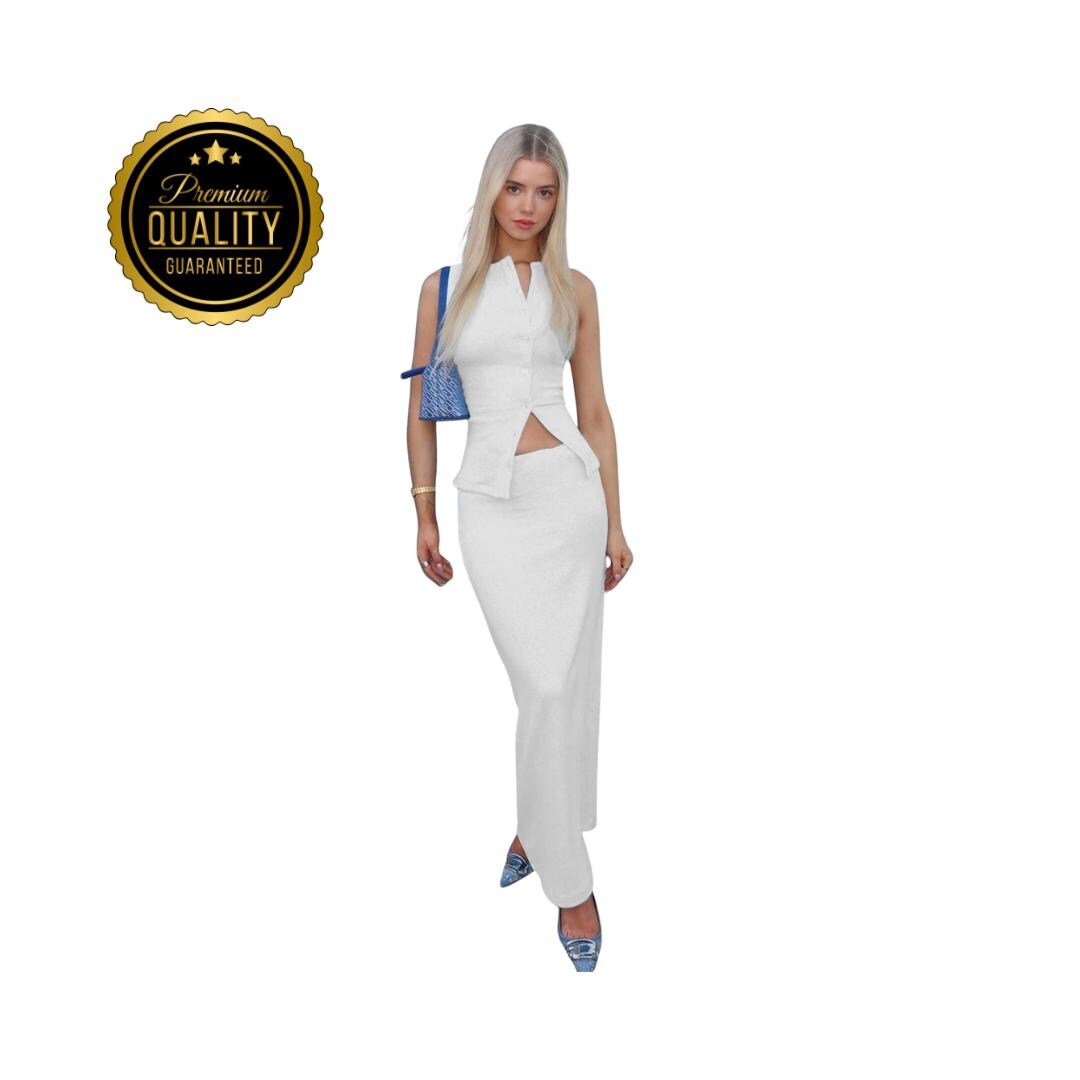 Step into effortless style with this Matching Suit Set, featuring a sleeveless ribbed top and a flowy maxi skirt designed for the 2024 spring and summer season. Crafted from lightweight, breathable fabric, this outfit blends sexy streetwear energy with a chic modern silhouette.