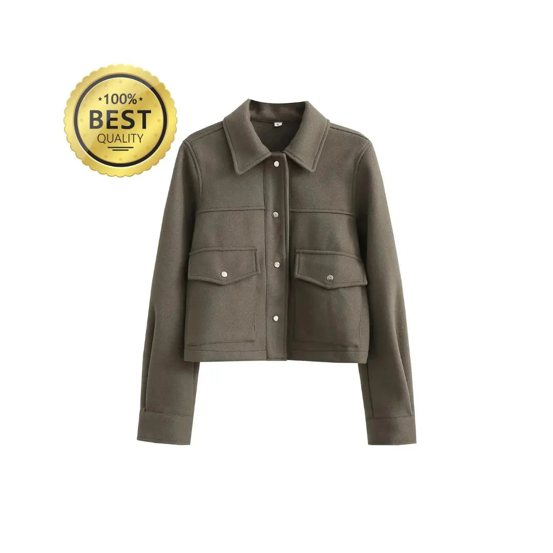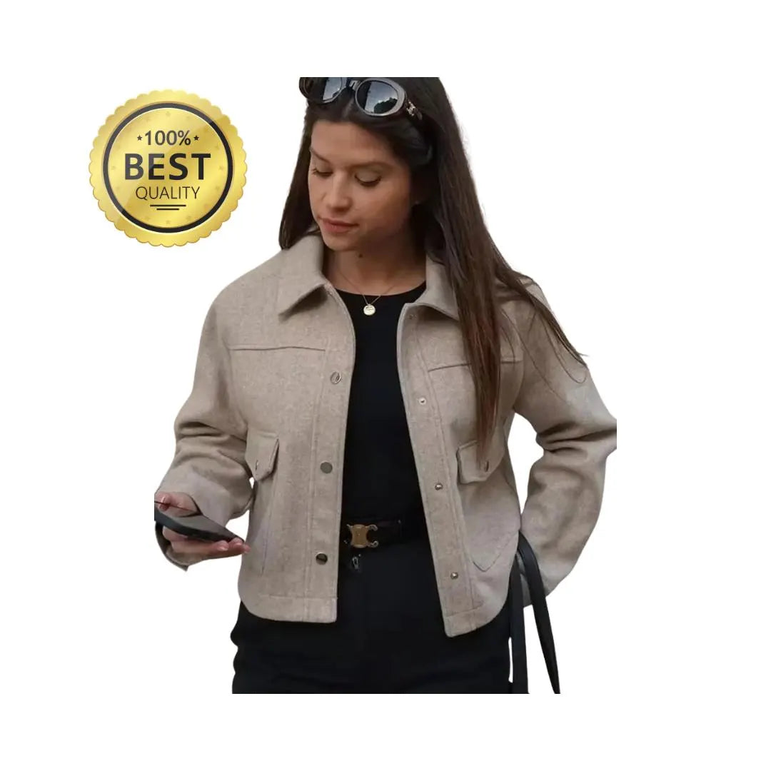 Stay effortlessly chic this spring with our Women’s Wool Short Jacket — a perfect blend of style and comfort. Designed with a classic lapel collar, decorative front pockets, and a single-breasted closure, this jacket adds a sophisticated touch to any outfit. The soft wool fabric keeps you cozy during cool spring days, while the short, tailored fit makes it ideal for layering over dresses, tops, or jeans. Whether you’re heading out for brunch or exploring the city, this trendy street-style jacket elevates your look with minimal effort.
