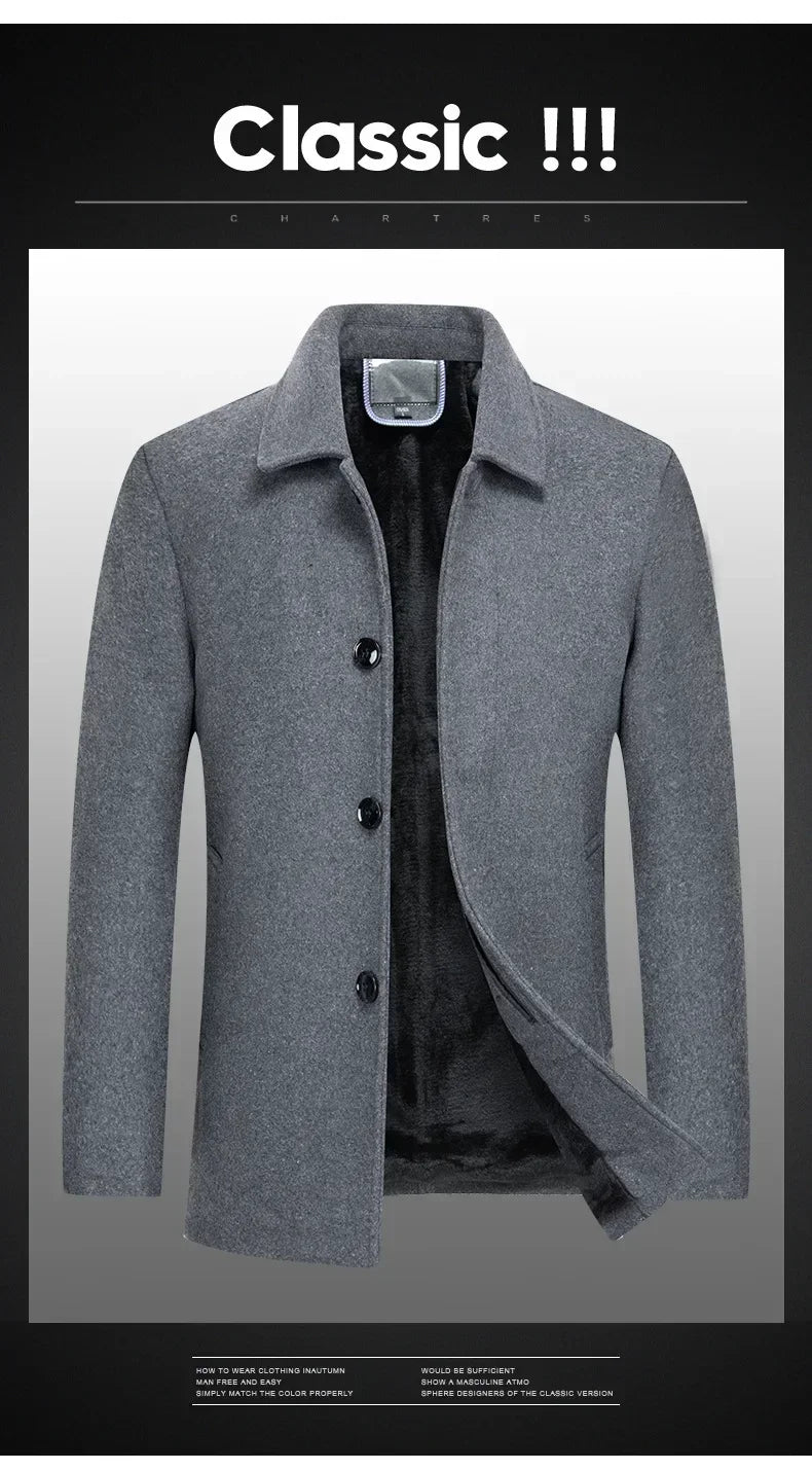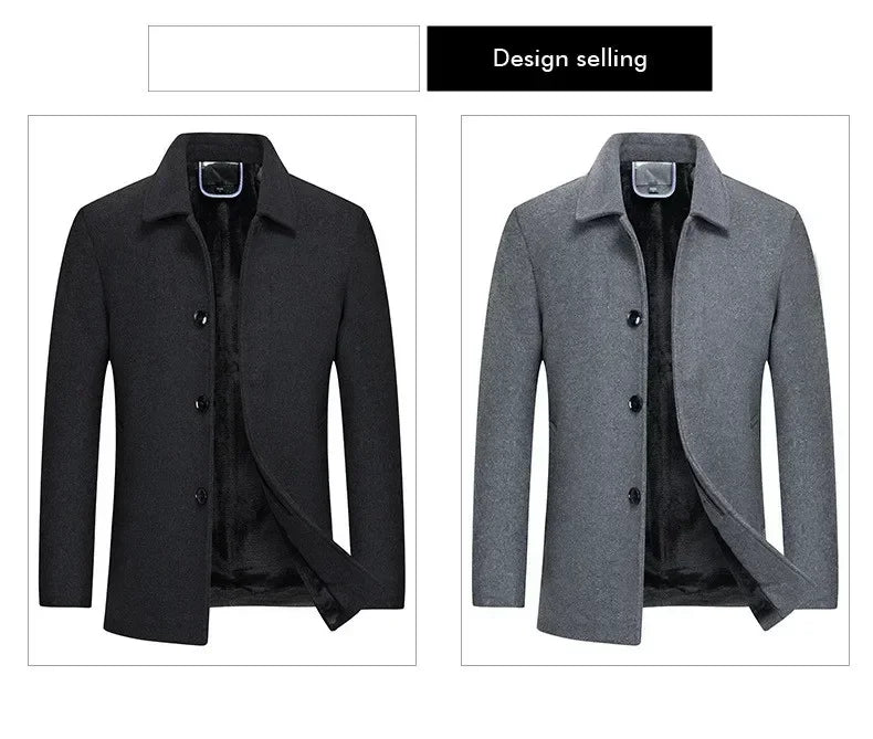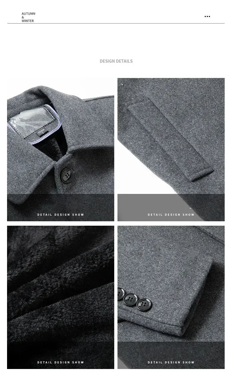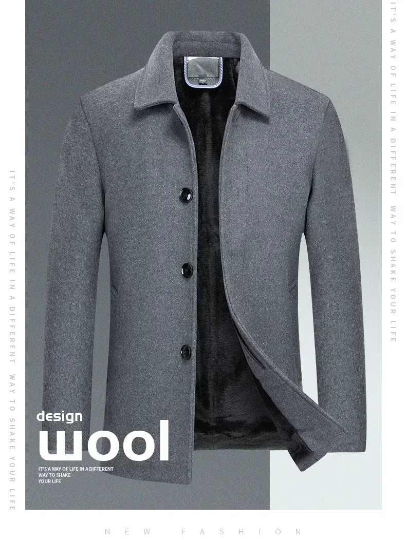 Jackets Business Casual Fleece Liner Woolen Autumn Winter Men Wool Jacket Slim Fit Thick Warm Trench Jackets Mens Brand Outwears
