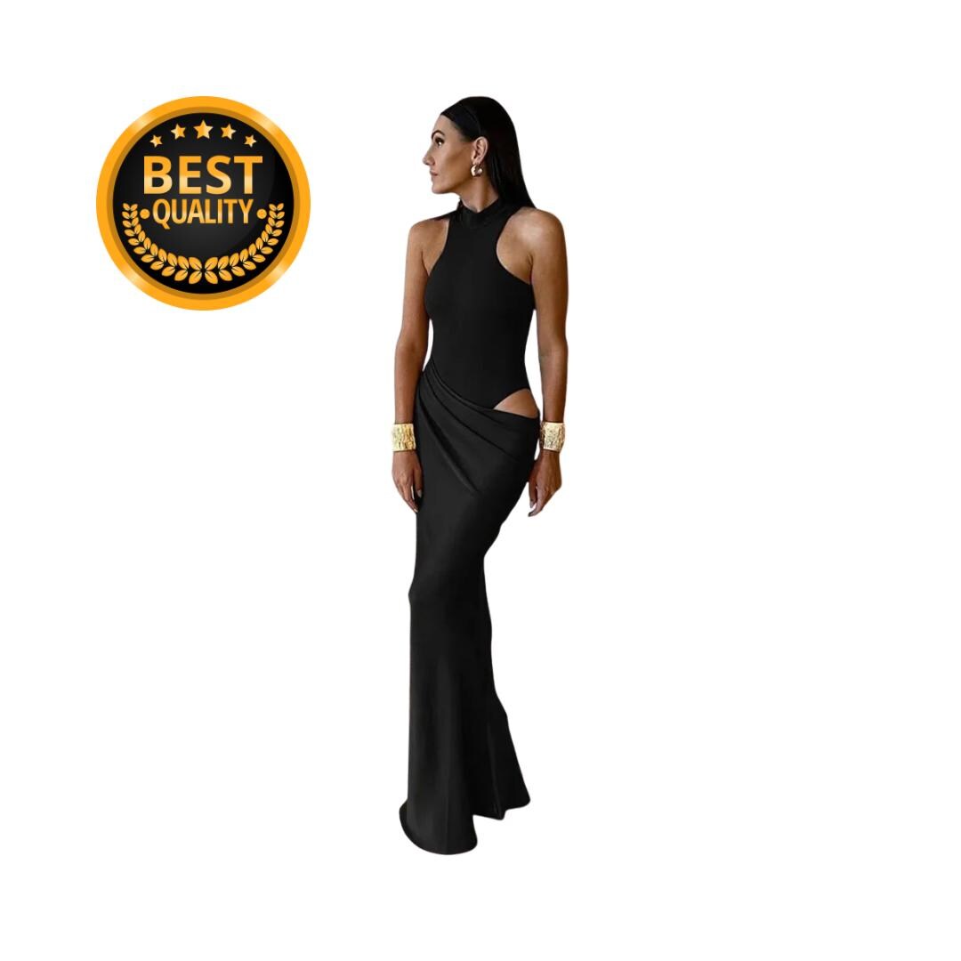 Sexy Hollow Out Women Maxi Dress Black Sleeveless High Waist Dress Female Autumn Skinny Elegant Party Clubwear