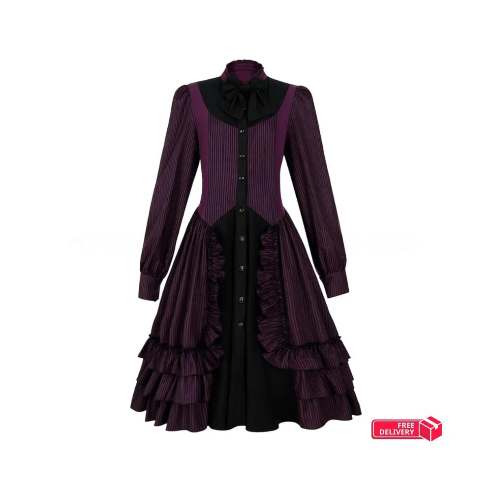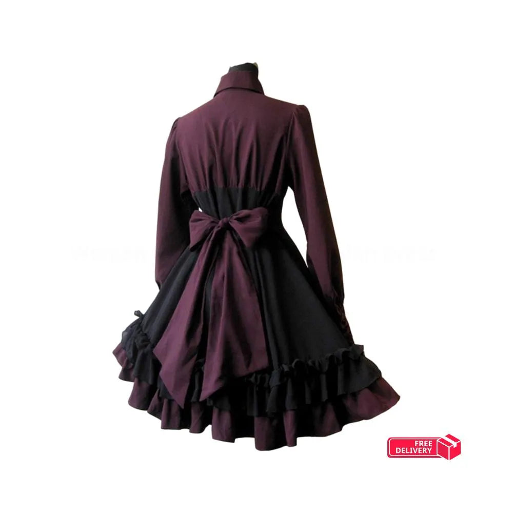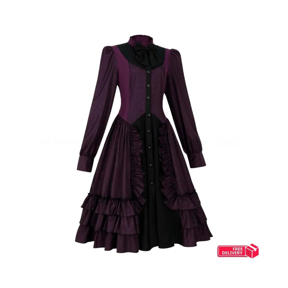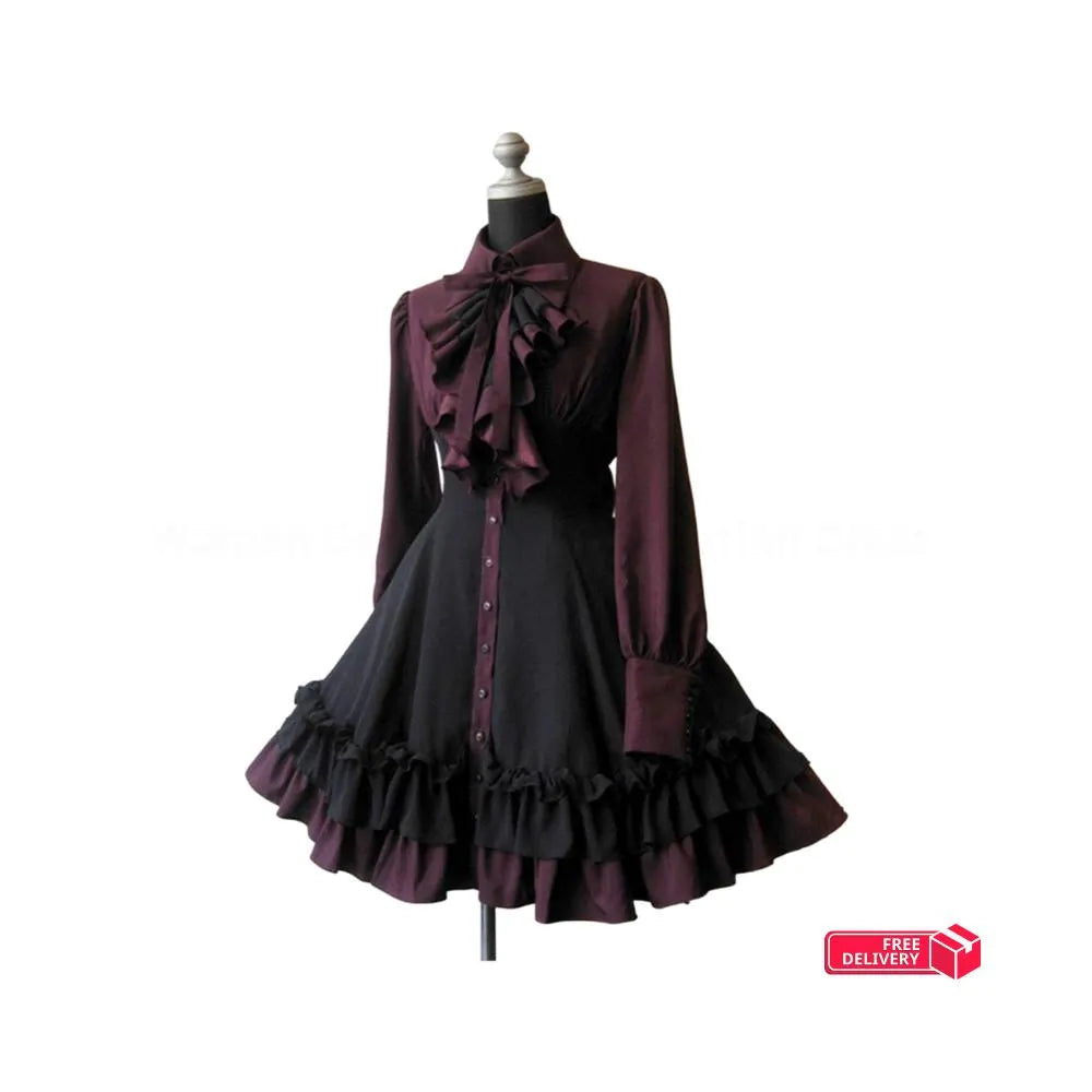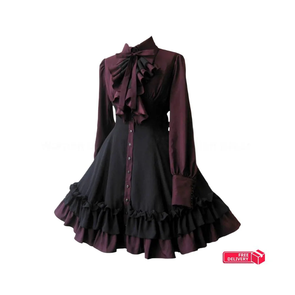 Medieval Retro Gothic Lolita Black Gothic Women Lolita Dresses Bow Collar Pleated Lace Up Goth Vintage Chic Jurken Dress