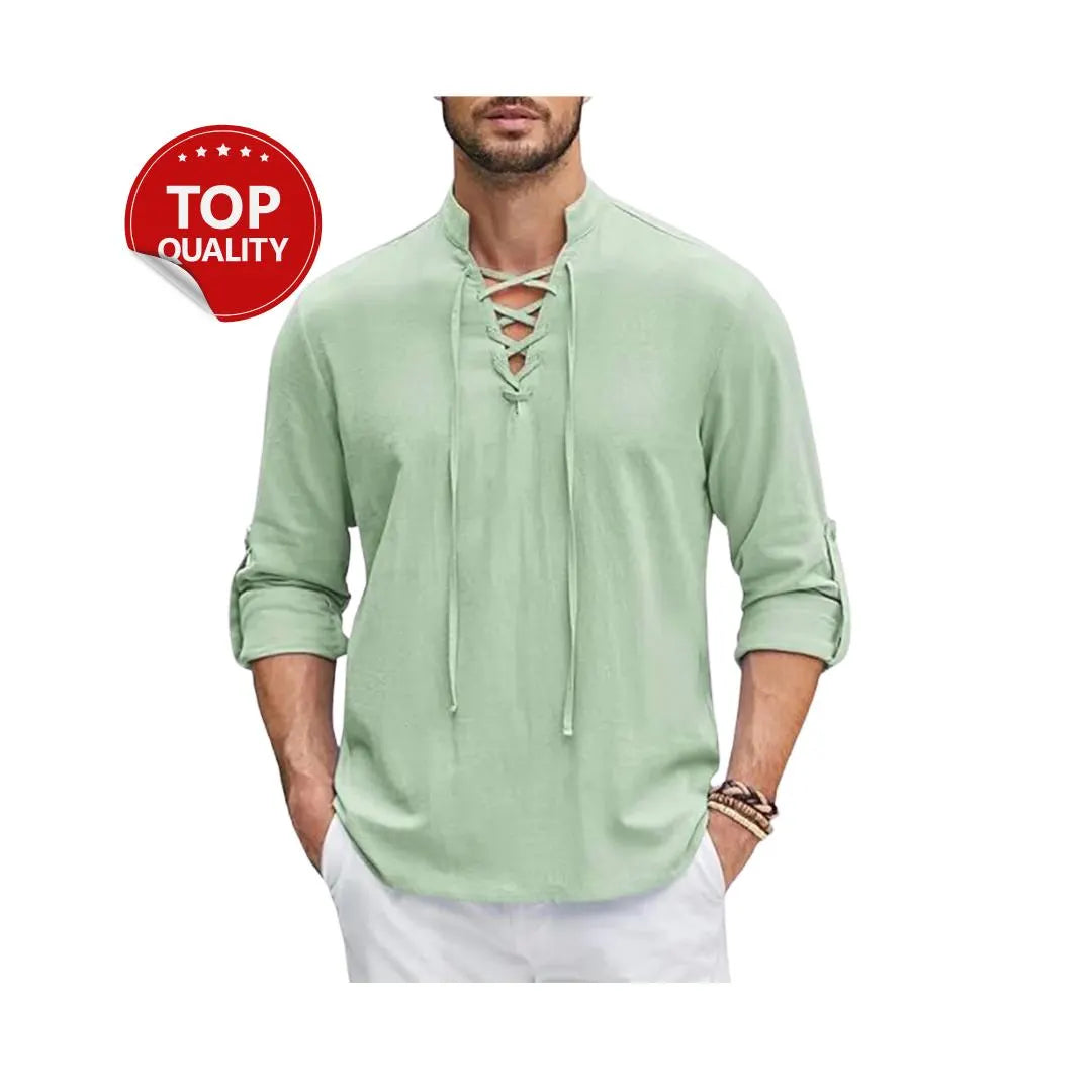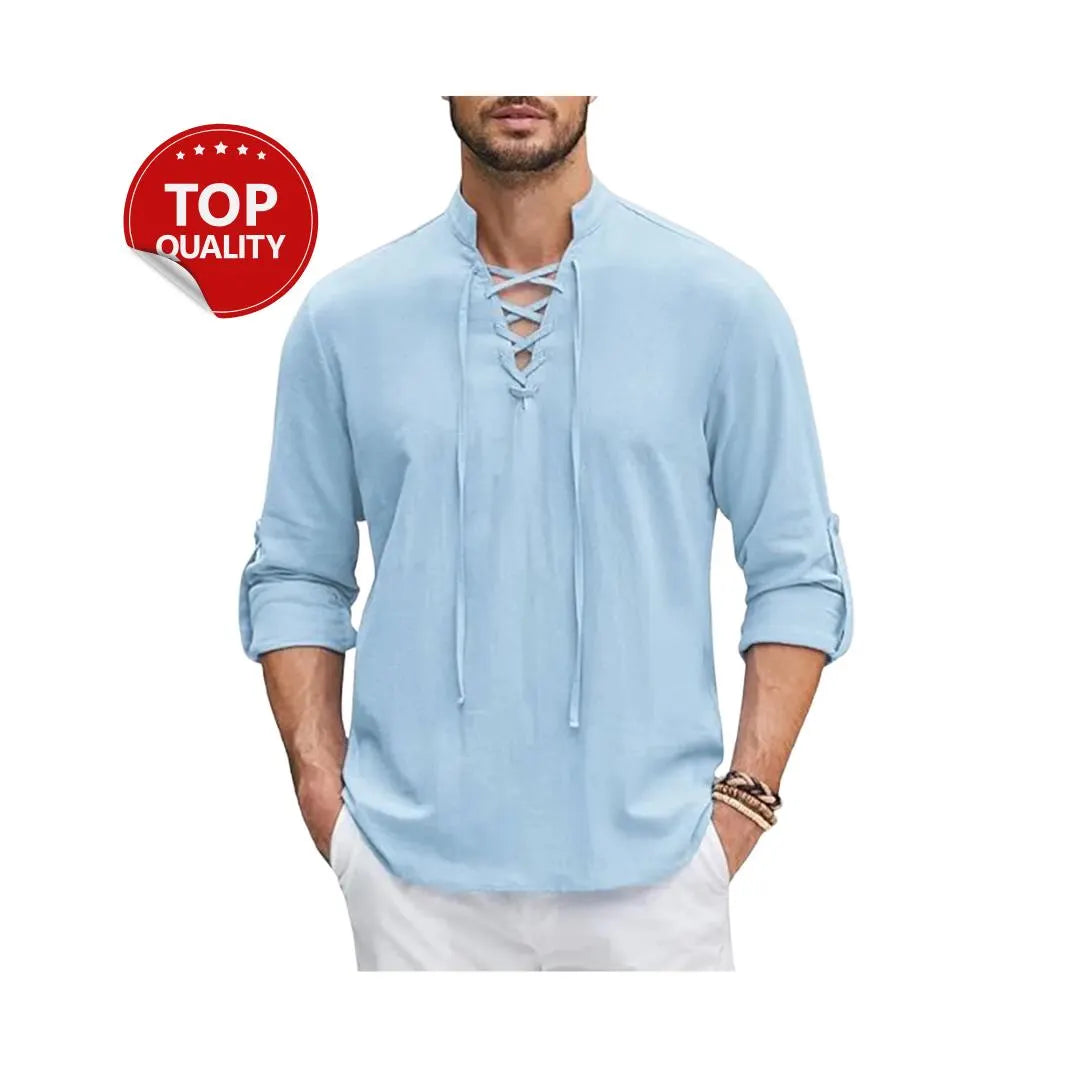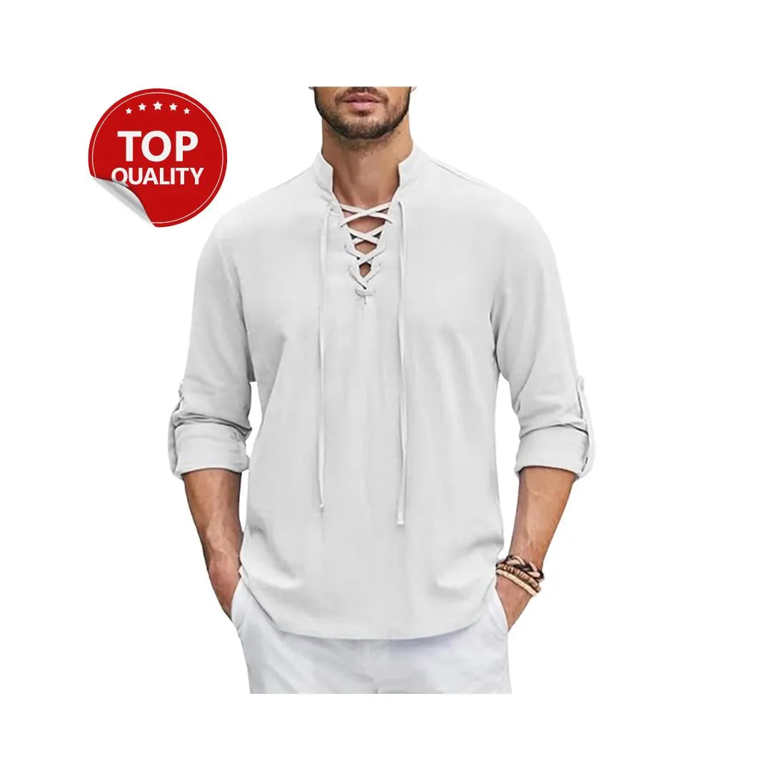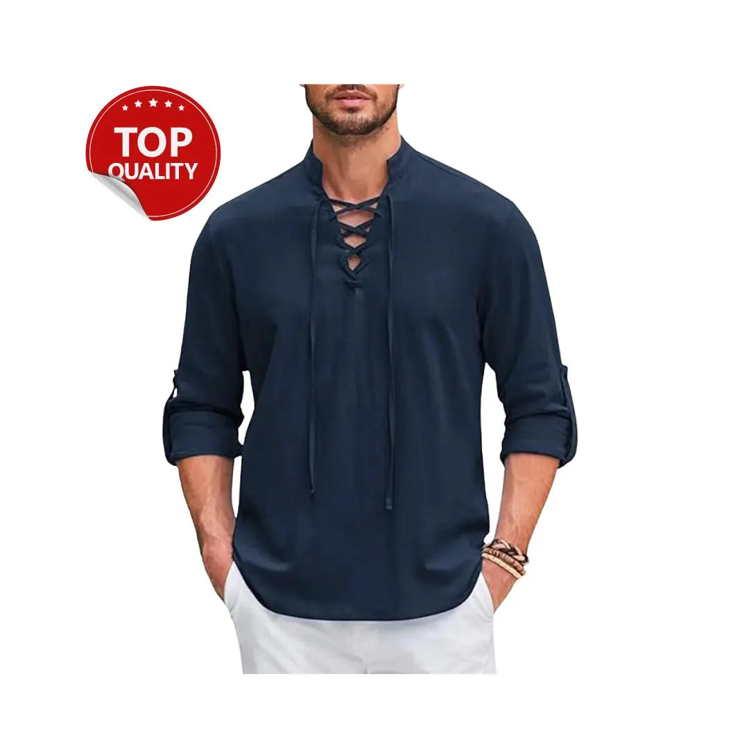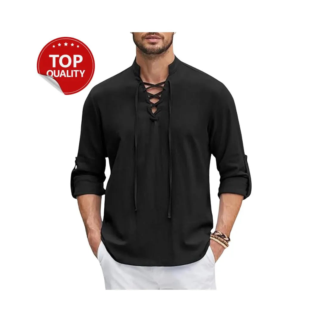 Men’s Cotton Renaissance Shirt: Long Sleeve Medieval Viking Top for Halloween or Cosplay