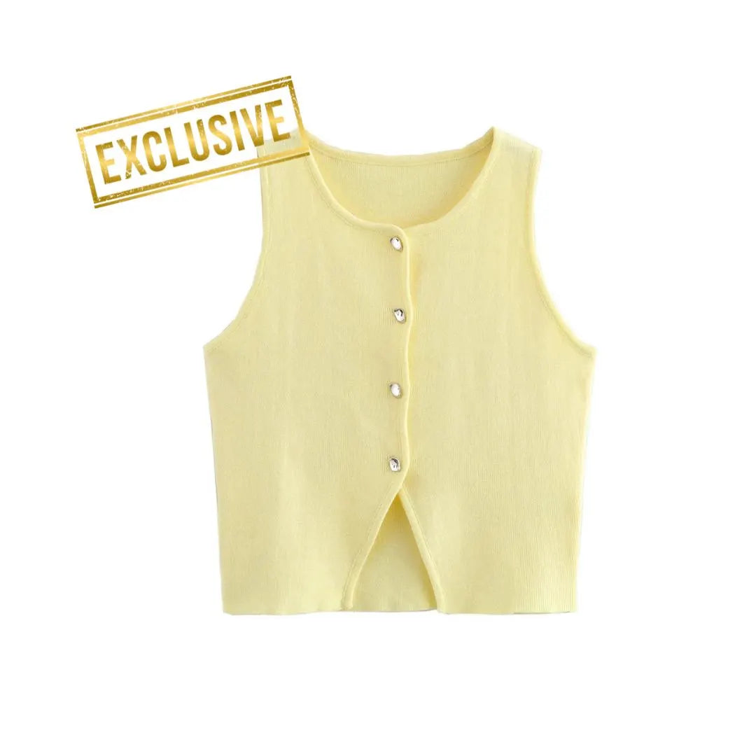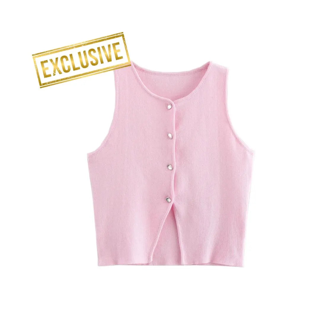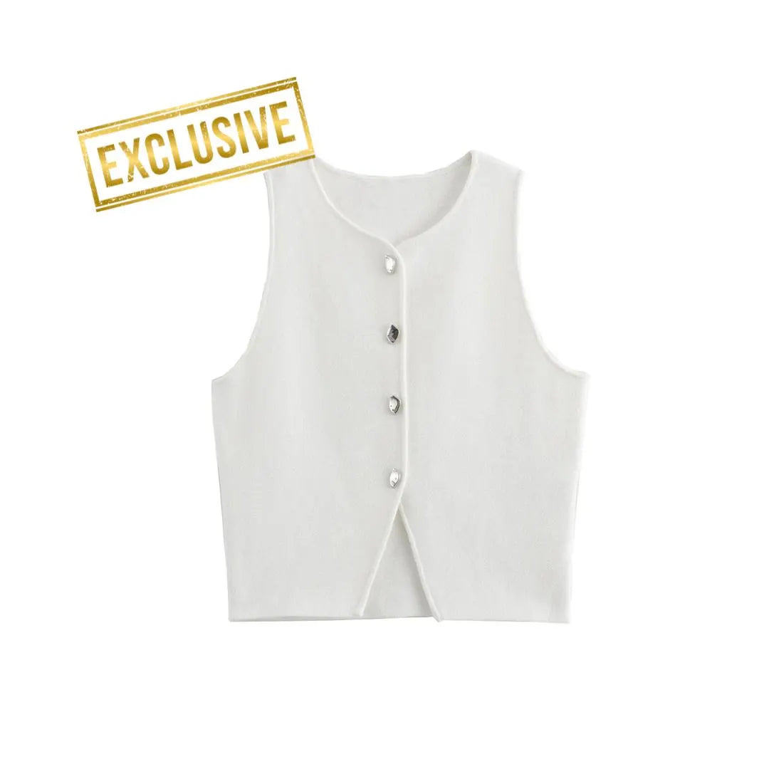 ☀️ Stay cute and cool this summer in the TRAF White Knit Crop Top – a soft and stylish piece perfect for streetwear or casual days out. Featuring a button front, ribbed knit fabric, and a slim-fit crop cut, this sleeveless tank is both flattering and comfy. Pair it with jeans, shorts, or skirts for an effortlessly trendy vibe that works from day to night. 💫👚