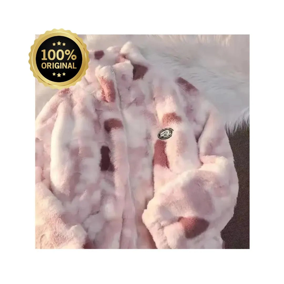 New Women's Tie Dye Lamb Fleece Jacket Autumn Winter Zipper Outerwear Warm Plush Jackets Harajuku Casual Loose Female Thick Coat