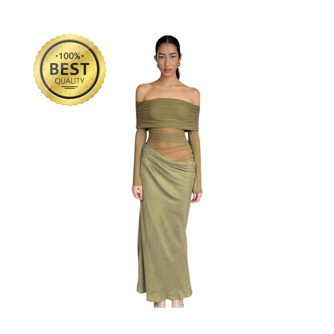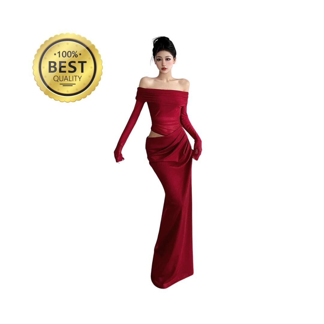 Featuring a slash neck design, ruched detailing, and a flattering body-hugging fit, this dress beautifully enhances your silhouette for any occasion.
