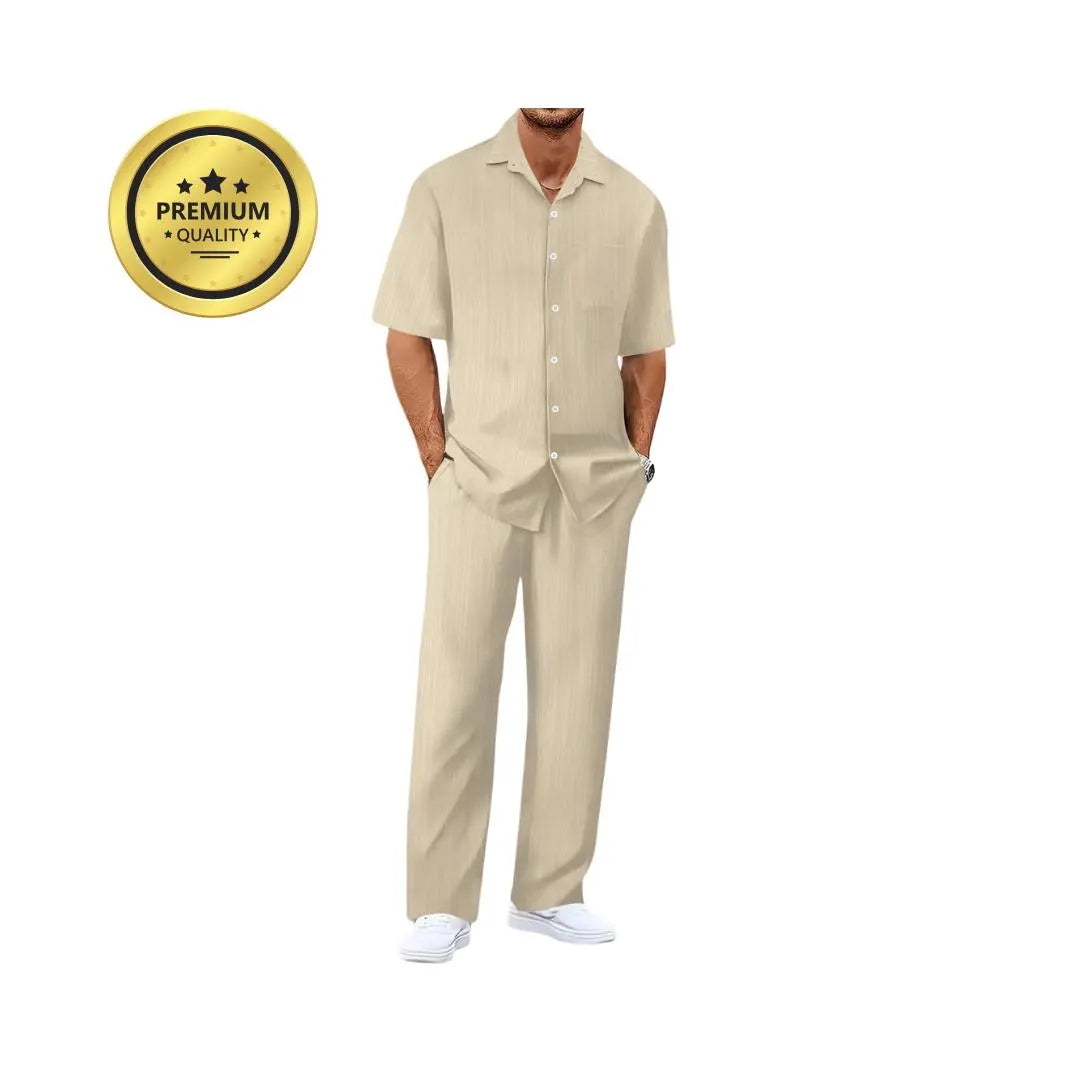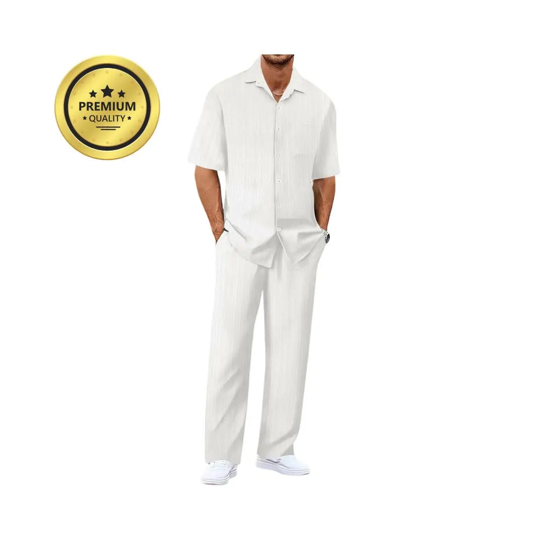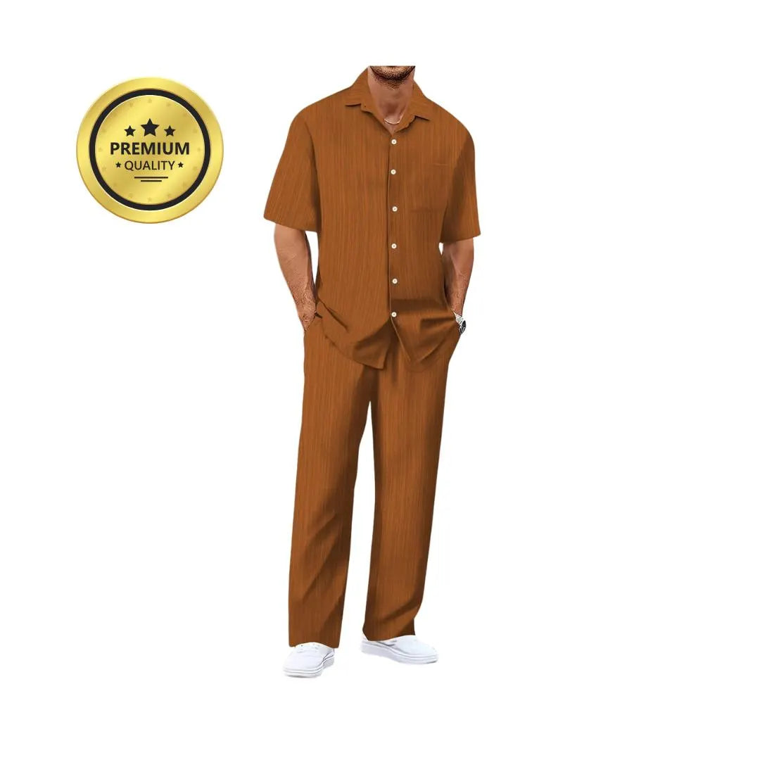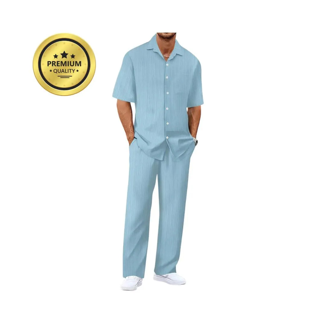 Crafted from breathable materials, this set keeps you cool and stylish during warm weather while maintaining a polished, professional look.