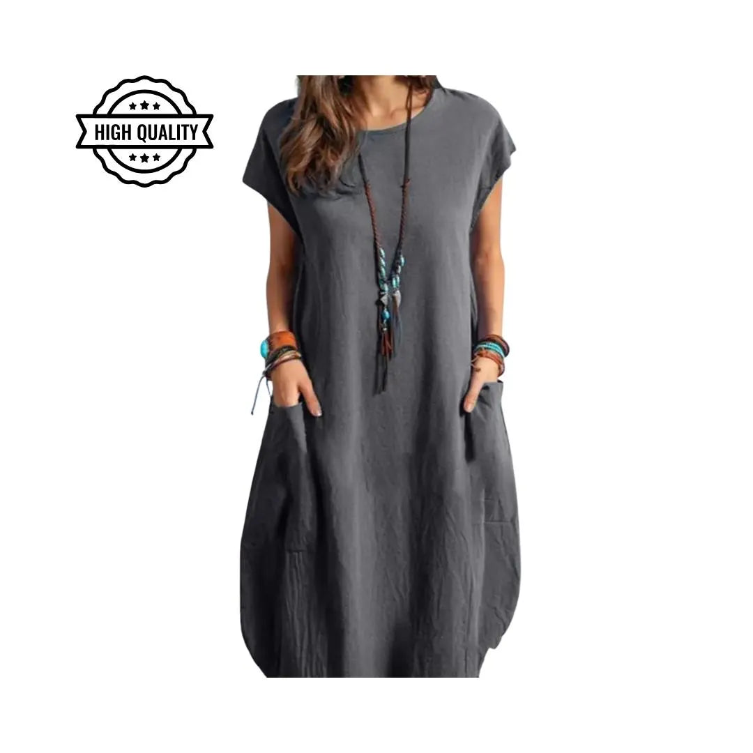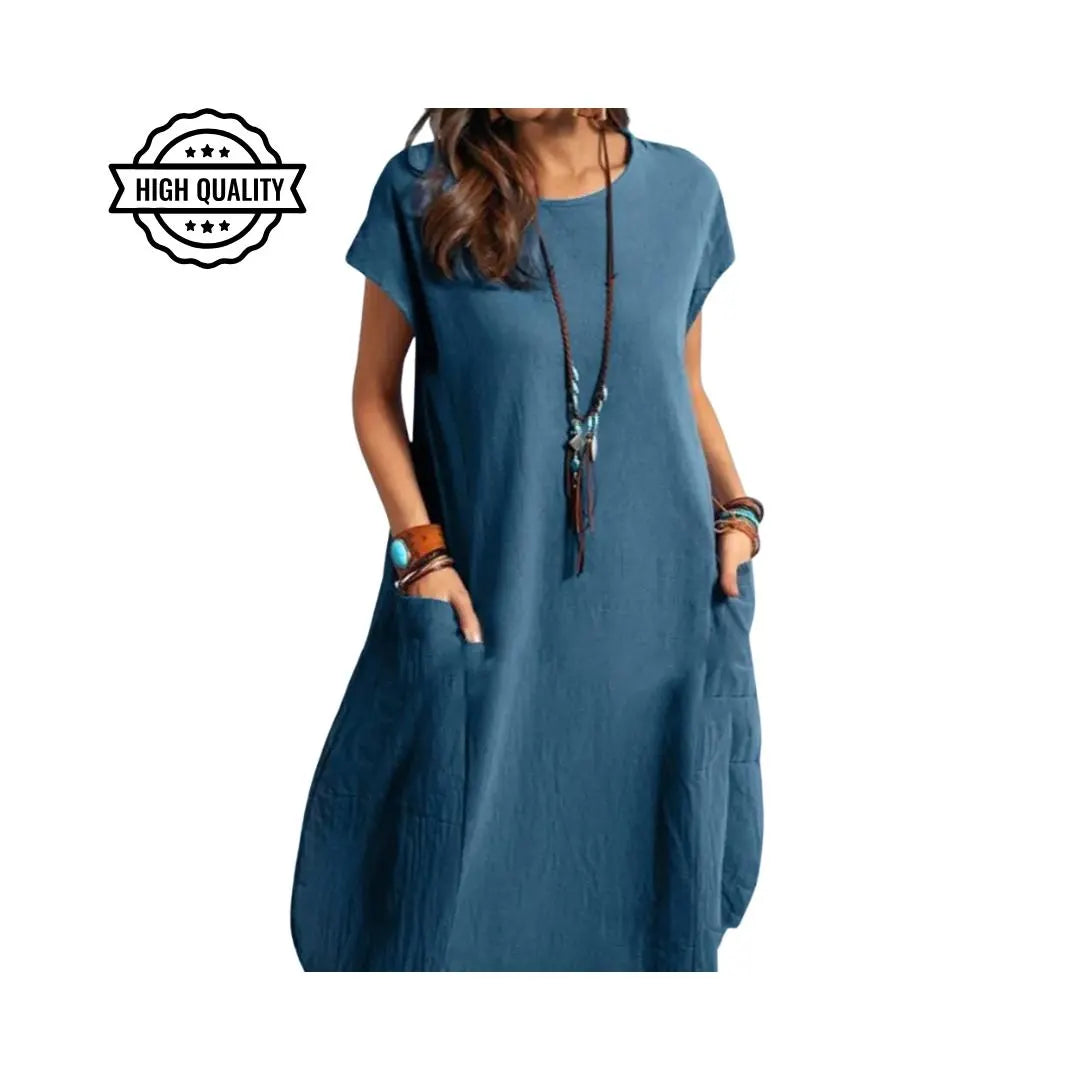 Women’s Oversized Vintage Dress: Short Sleeve Cotton Sundress, Casual Loose Summer Outfit