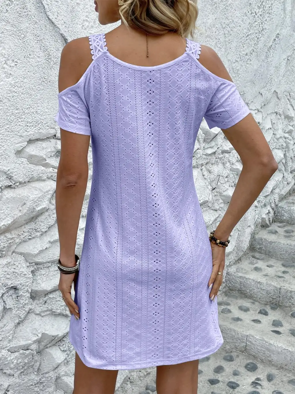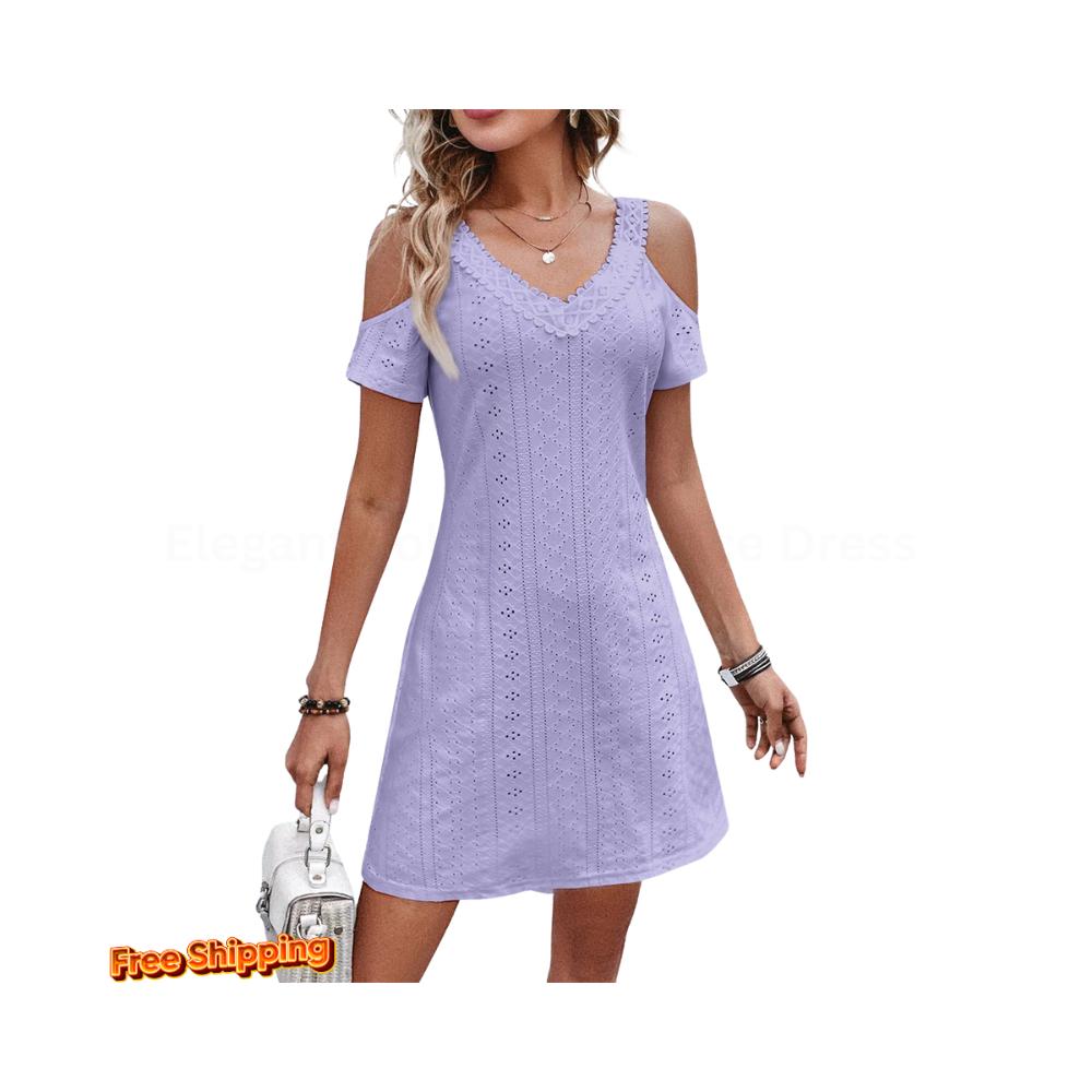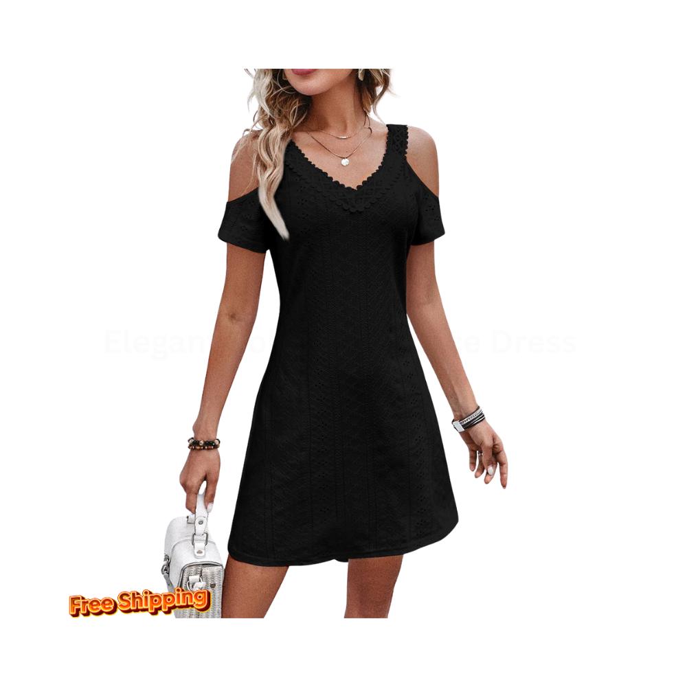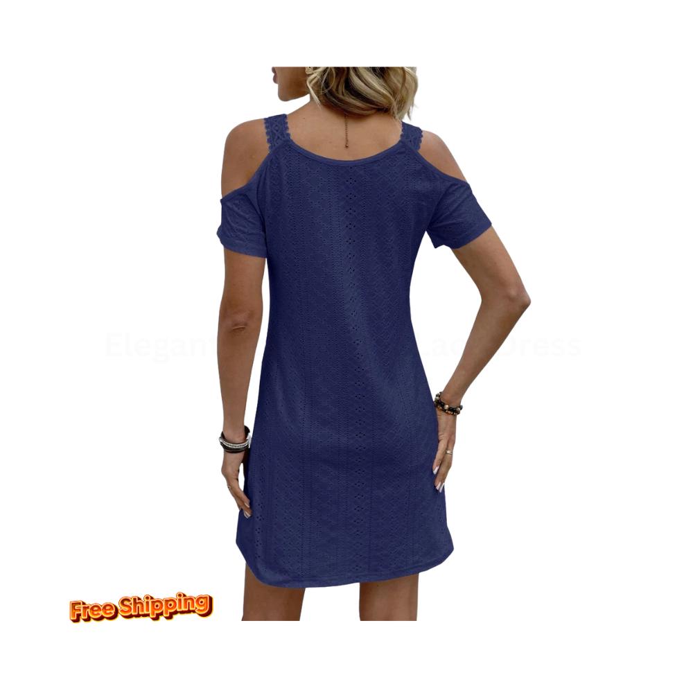 Designed with a flattering V-neckline and delicate hollow-out lace detailing, this dress brings out your feminine charm for any occasion — from daytime brunches to evening parties. The short sleeves and lightweight fabric keep you cool, while the mini-length silhouette adds a playful yet sophisticated touch.