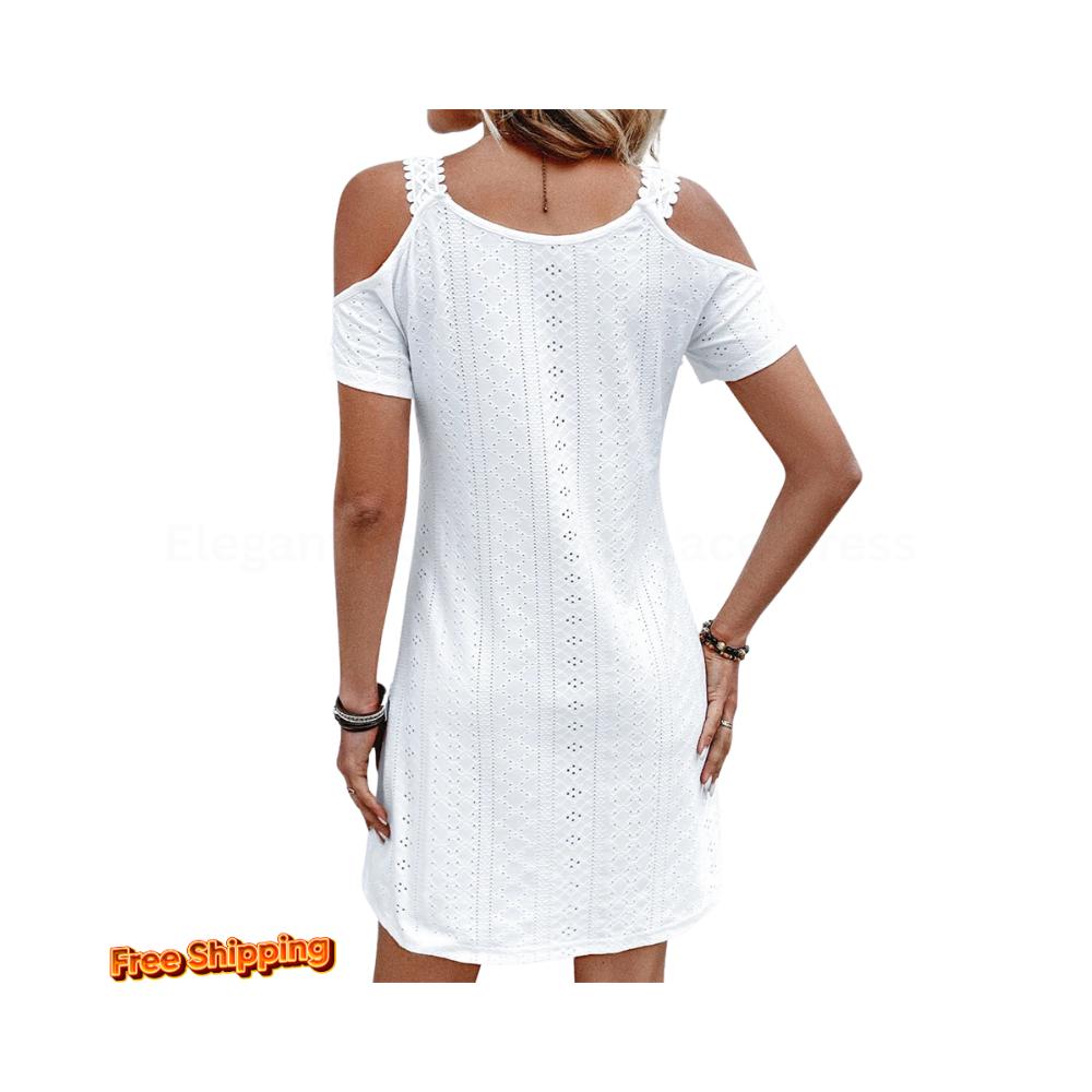 Stay effortlessly chic this summer with our elegant Off-Shoulder White Lace Mini Dress.