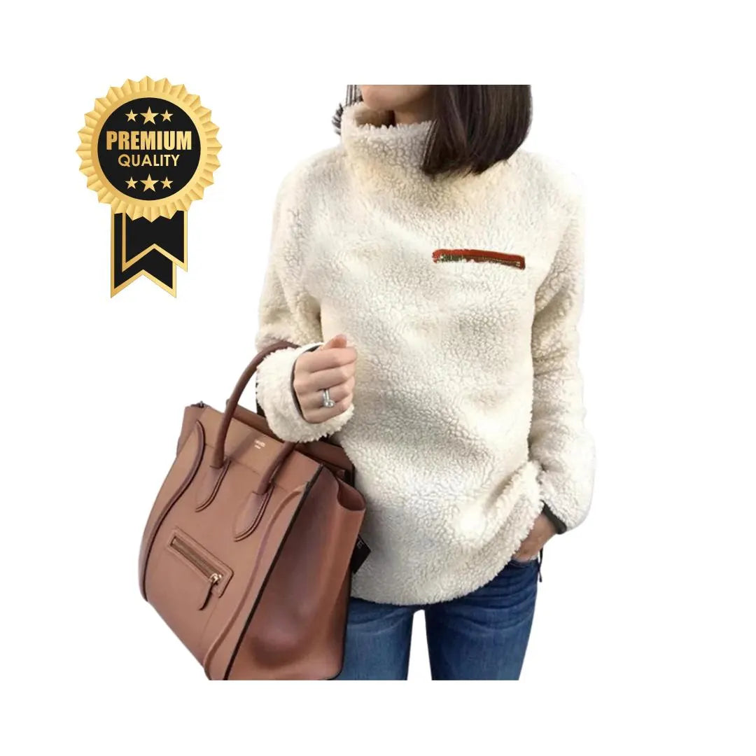❄️✨ Stay cozy and stylish this season with the Women’s Solid Color Turtleneck Pullover Sweater, crafted from super soft knit fabric for all-day comfort. Featuring a zipper front detail, long sleeves, and chic hipster vibe, this sweater is perfect for autumn and winter layering.