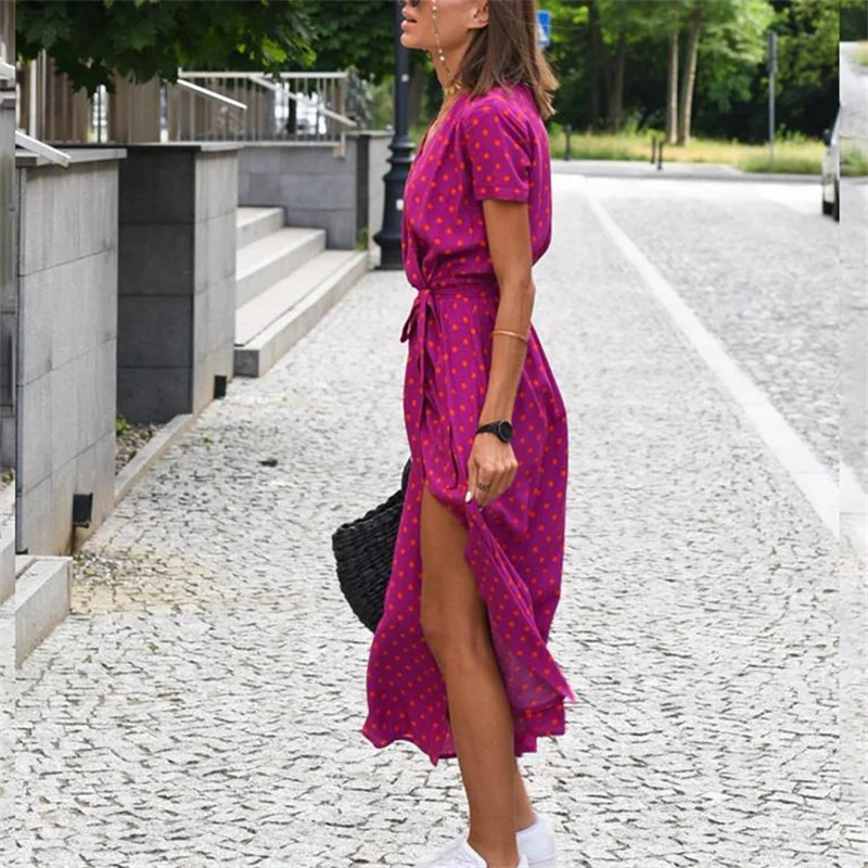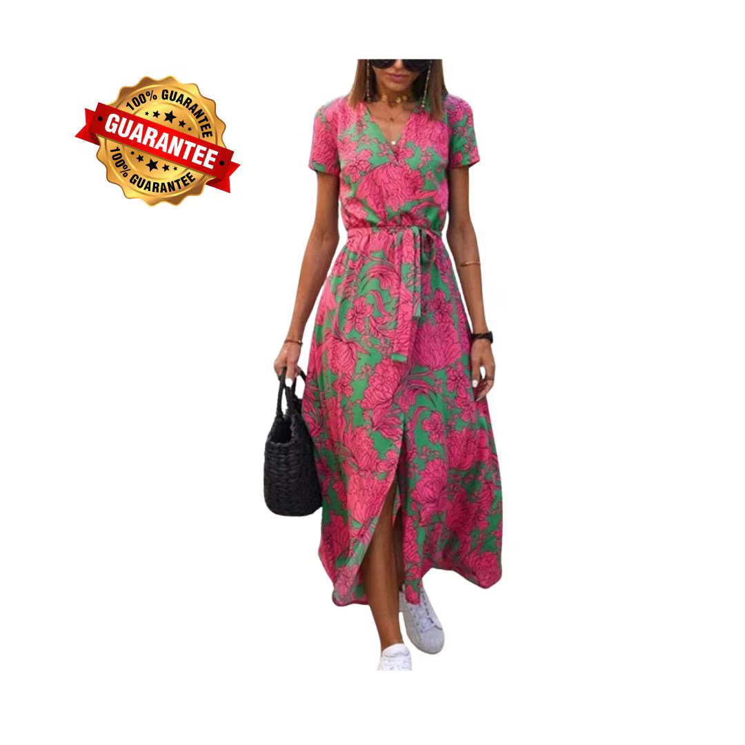 Turn heads this summer with our elegant V-neck split hem dress, designed for confident women who love fashion with flair! ✨ This dress features a lace-up waist, crossover neckline, and chic prints – perfect for casual days or dressed-up nights. 🌸