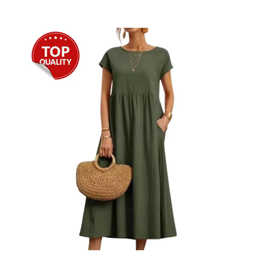 Step into effortless elegance this summer with our 🌿 Women’s Vintage Solid Dress. Crafted from a soft and breathable cotton-linen blend, this long dress is perfect for warm days and timeless style.