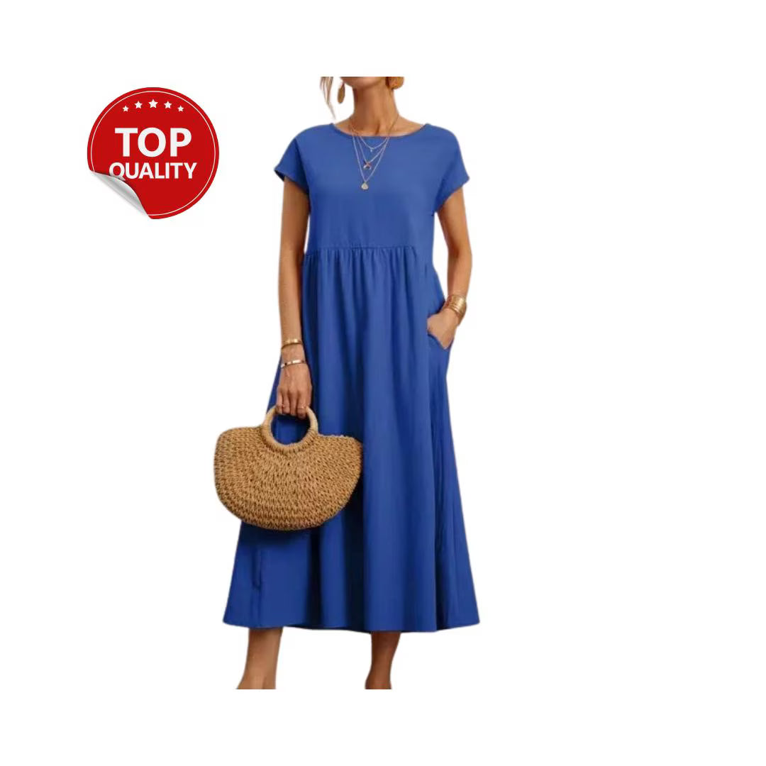 Featuring an elegant O-neck, comfy short sleeves, and a loose, flowing silhouette, this dress brings together vintage charm and modern comfort. Ideal for casual outings, garden parties, or simply relaxing in the sunshine ☀️.