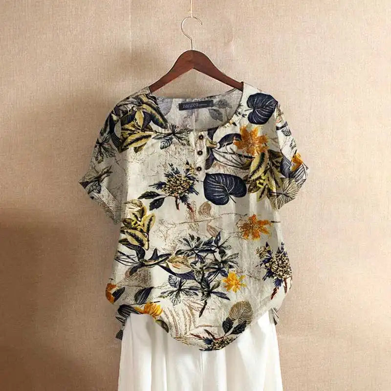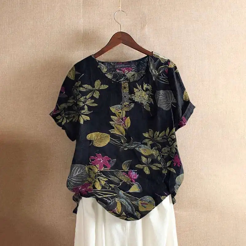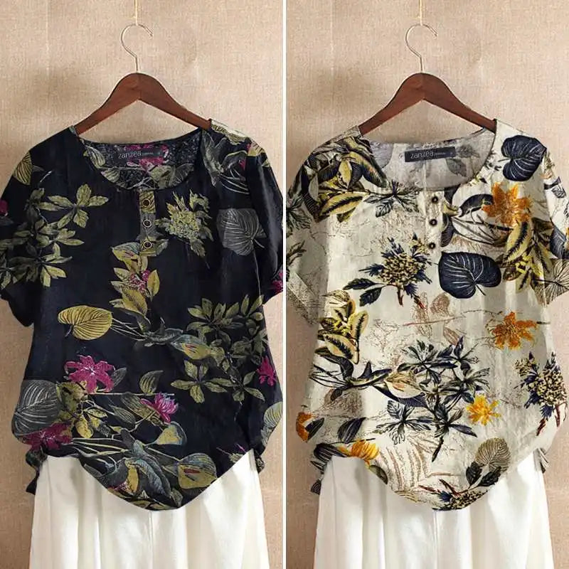 ZANZEA Women Cotton Shirt Fashion Floral Printed Tops Ladies Kaftan Chemise 2024 Summer Short Sleeve Blouses Causal O-neck Tunic